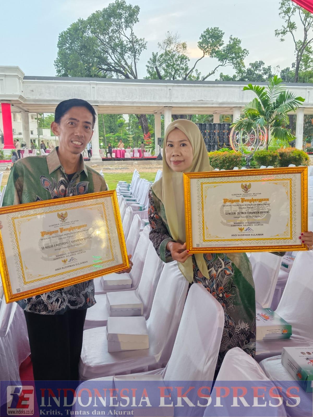 Sejumlah penerima penghargaan di antaranya Asrianto, Kepala SDN 5 Mattiropole, serta Andi Rosmini, Kepala SDN 26 Tinco, Kabupaten Soppeng, yang dinilai berhasil mengimplementasikan Gerakan Peduli dan Berbudaya Lingkungan Hidup di Sekolah (PBLHS).