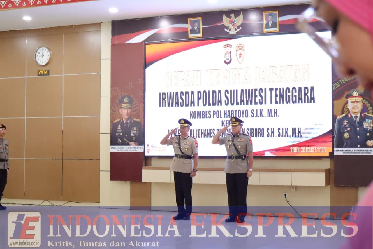 Kendari (INDEKS)– Kepala Kepolisian Daerah Sulawesi Tenggara, Irjen Pol Didik Agung Widjanarko, S.I.K., M.H., memimpin upacara serah terima jabatan (sertijab) Inspektur Pengawasan Daerah (Irwasda) Polda Sultra yang berlangsung di Aula Dachara Polda Sultra, Senin (30/3/2026).