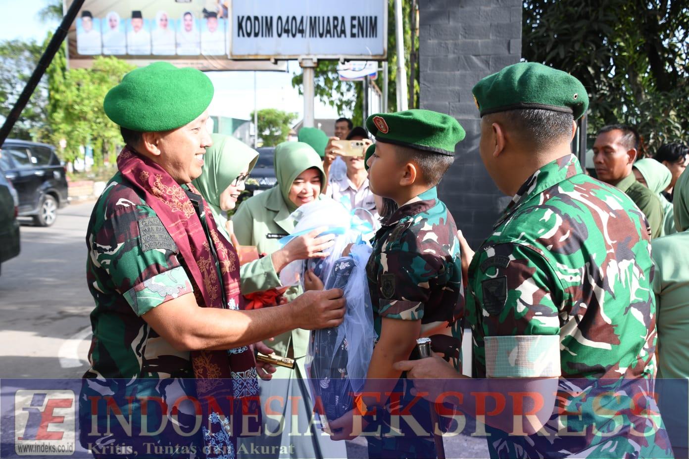 Dalam kunjungan tersebut, Danrem didampingi Ketua Persit Kartika Chandra Kirana (KCK) Koorcab Rem 044 Veranti Khabib dan disambut oleh jajaran Kodim 0404/Muara Enim beserta anggota Persit setempat.