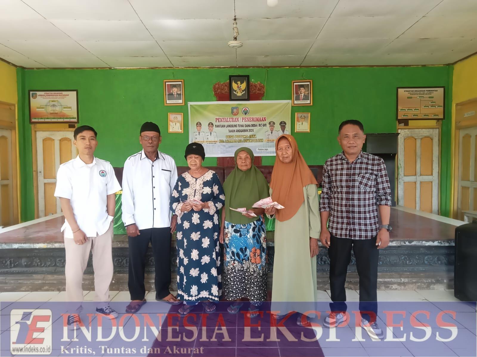 Konawe Selatan (INDEKS) — Pemerintah Desa Potuho Jaya, Kecamatan Lalembuu, Kabupaten Konawe Selatan, Provinsi Sulawesi Tenggara, berhasil merealisasikan penyaluran Bantuan Langsung Tunai Dana Desa (BLT-DD) tahap I tahun anggaran 2026 kepada 14 keluarga penerima manfaat (KPM).